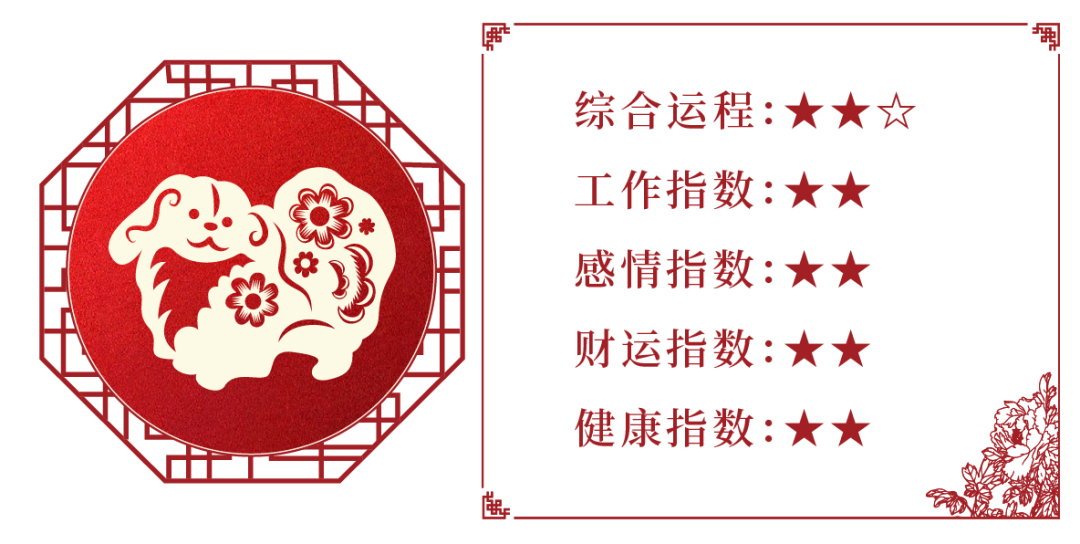 戌狗逢辰龙月为犯冲,辰戌为财库,财库逢冲则开,事业、工作发展机会较多,可以说处处商机,利于投资,扩展事业,属于一个多做多成的月份。但逢冲之月又主变动,运势虽旺,但也会存在一定风险,所以遇事需谨慎对待,注意考察,切忌因一时大意而出现错误判断,导致钱财损耗则得不偿失。