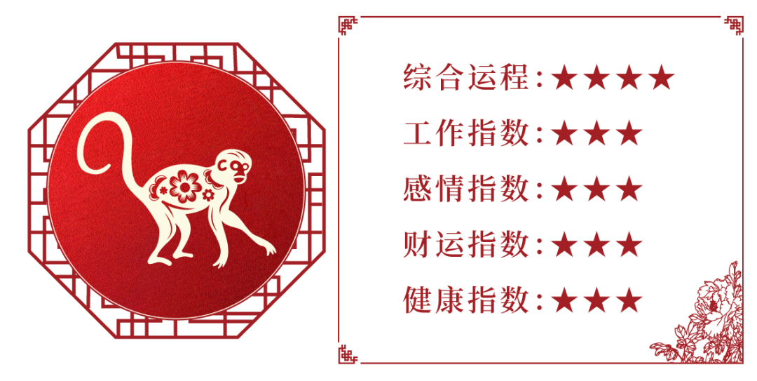 本月生肖猴的朋友运逢“半三合贵地”,遇事多能得到贵人的指点与帮助,自身才能方面也可以得到良好发挥。为多友多交,竞争得利,事业平稳进展的良好信息,只要多注意听取他人的忠告,遇事三思而行,定能在运势上取得不错的回报。
