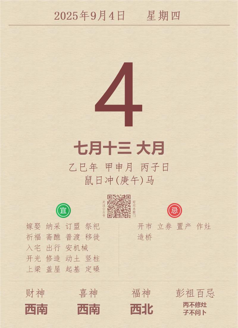 公历:2025年9月4日 星期四