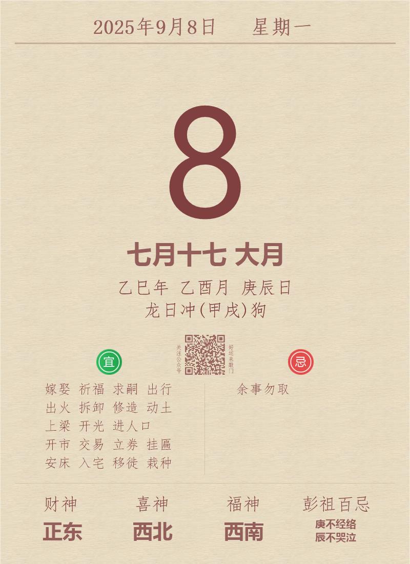 时宜:祈福 求嗣 纳采 嫁娶 求财 开市 交易 安床