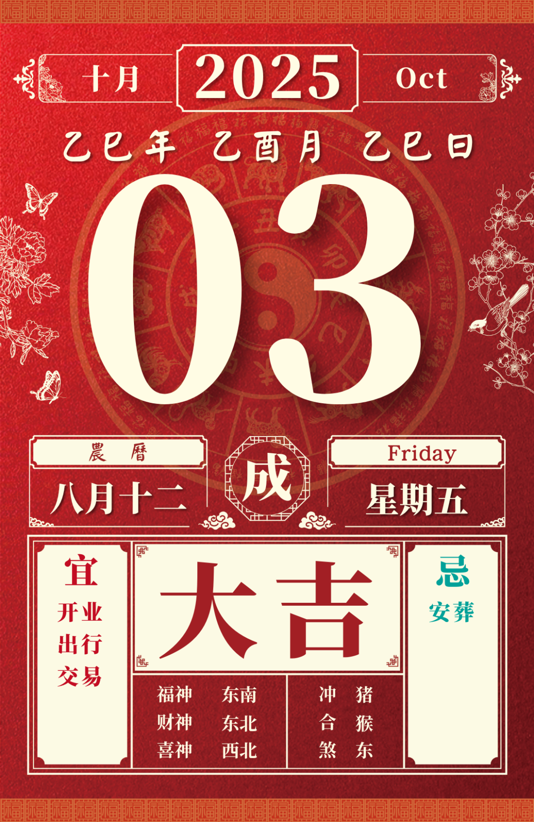 旺运方位:此日利于东北方出行;西方不宜。