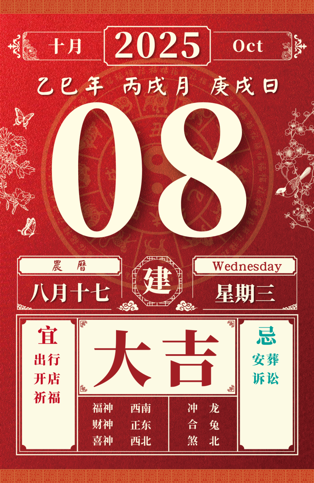 旺运方位:此日利于东北方出行;西方不宜。