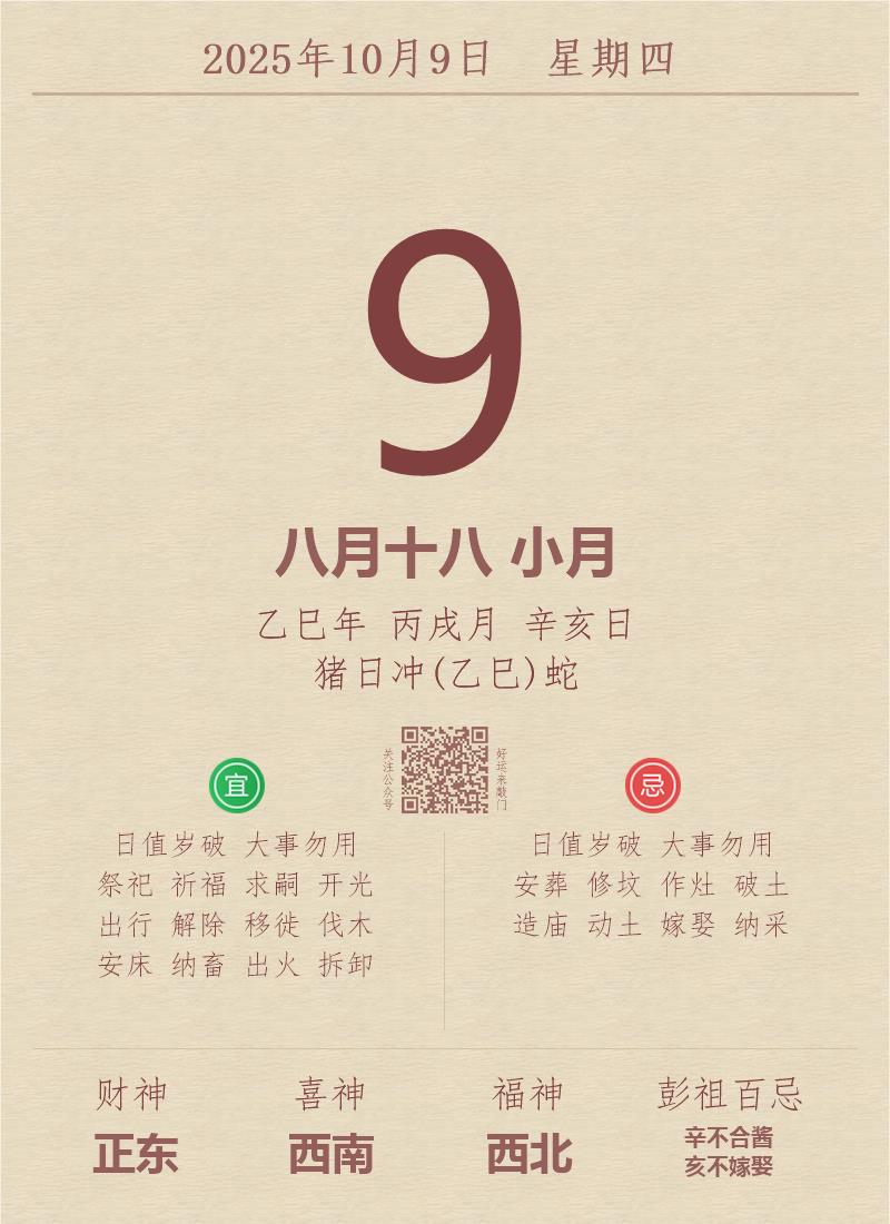 时宜:开市 入宅 修造 移徙 安床 作灶 祭祀 祈福 嫁娶 出行 安葬 求嗣 求财 交易