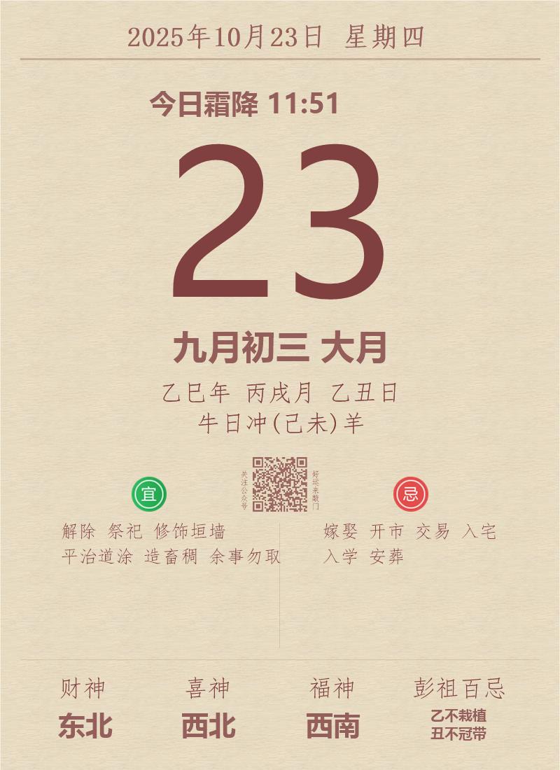 公历:2025年10月23日 星期四