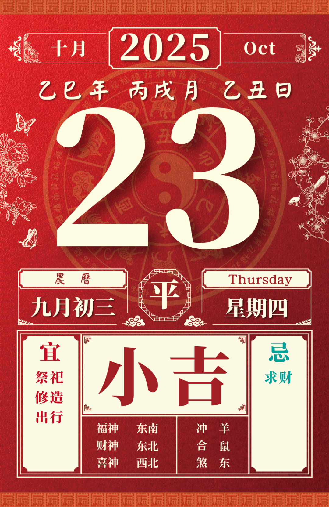 旺运方位:此日利于朝南方出行;东北方不宜。