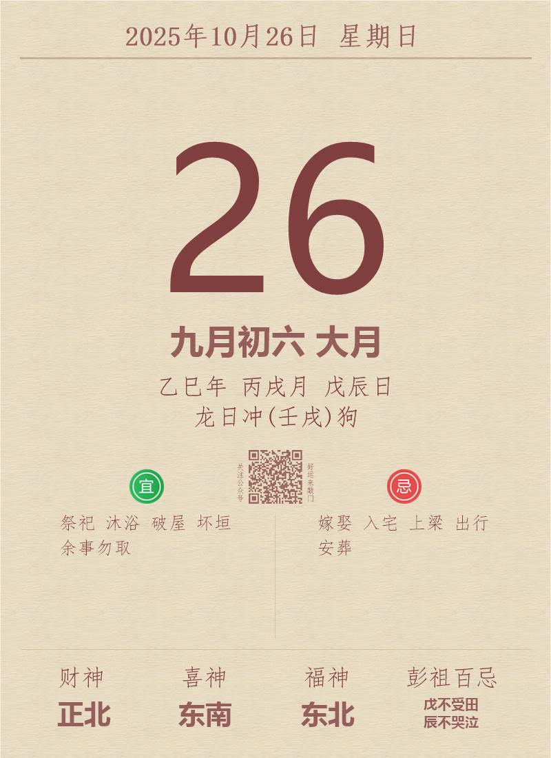 公历:2025年10月26日 星期日