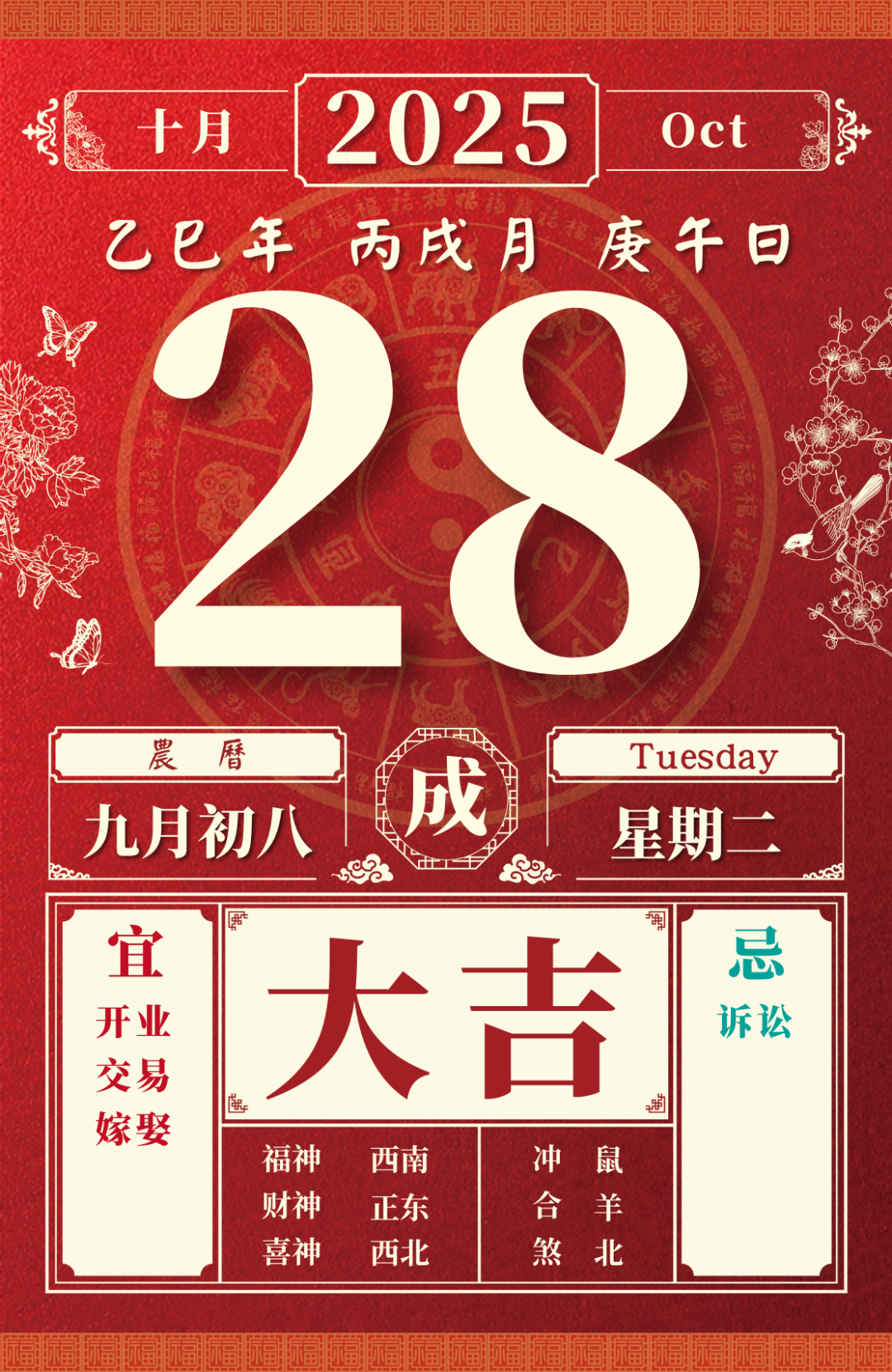 旺运方位:此日利于朝东方出行;西北方不宜。