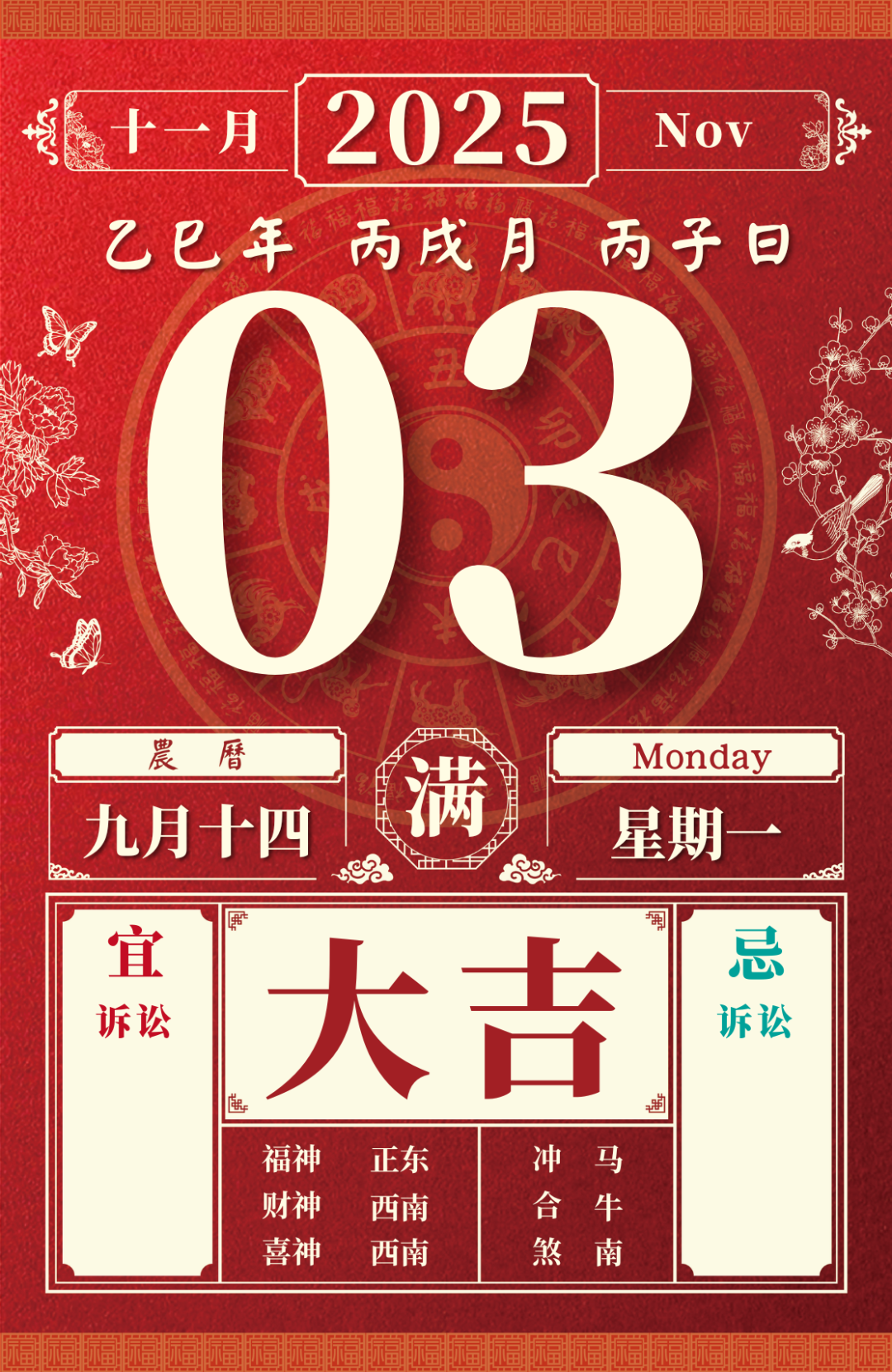 旺运方位:此日利于朝北方出行;西南方不宜。