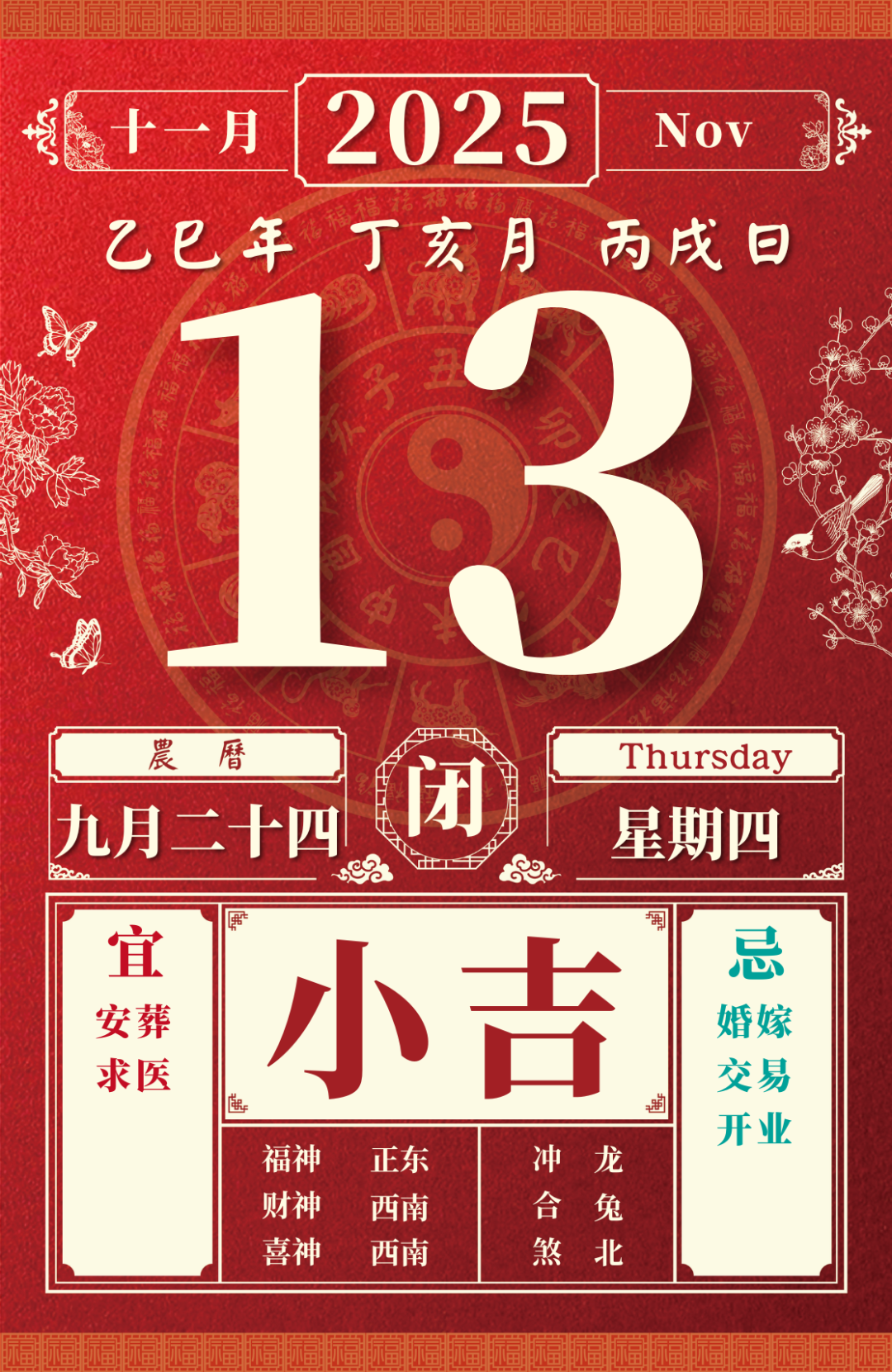 旺运方位:此日利于朝南方出行;东北方不宜。