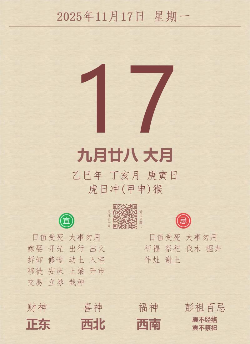 时忌:祭祀 祈福 斋醮 开光 赴任 出行