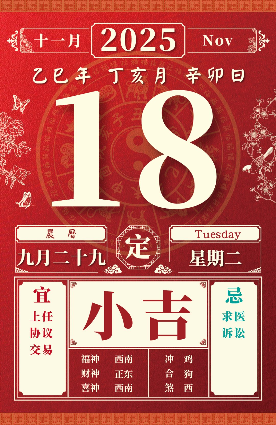旺运方位:此日利于朝东方出行;西北方不宜。