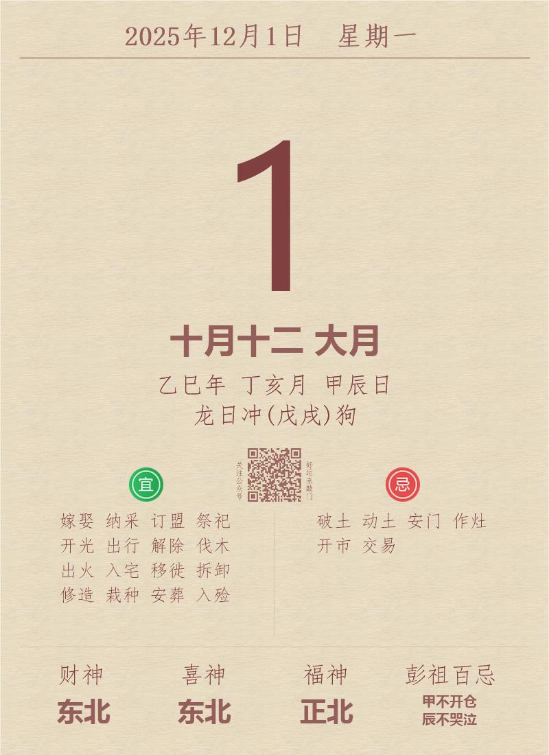 公历:2025年12月1日 星期一