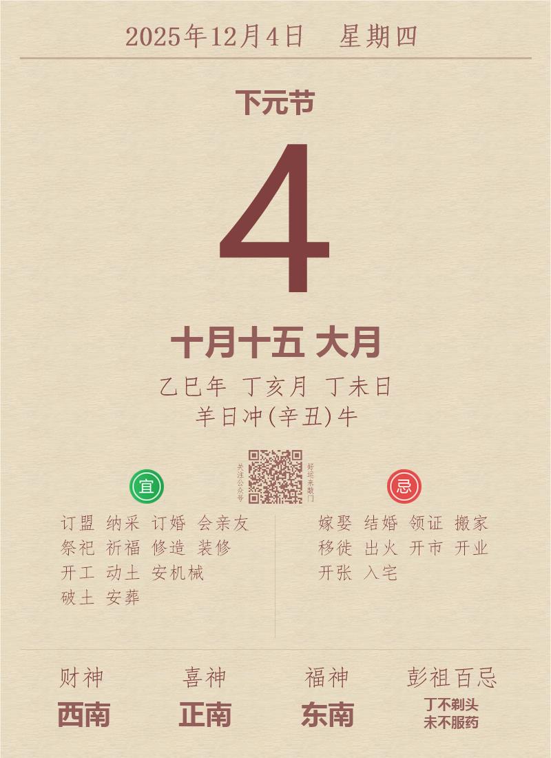 公历:2025年12月4日 星期四