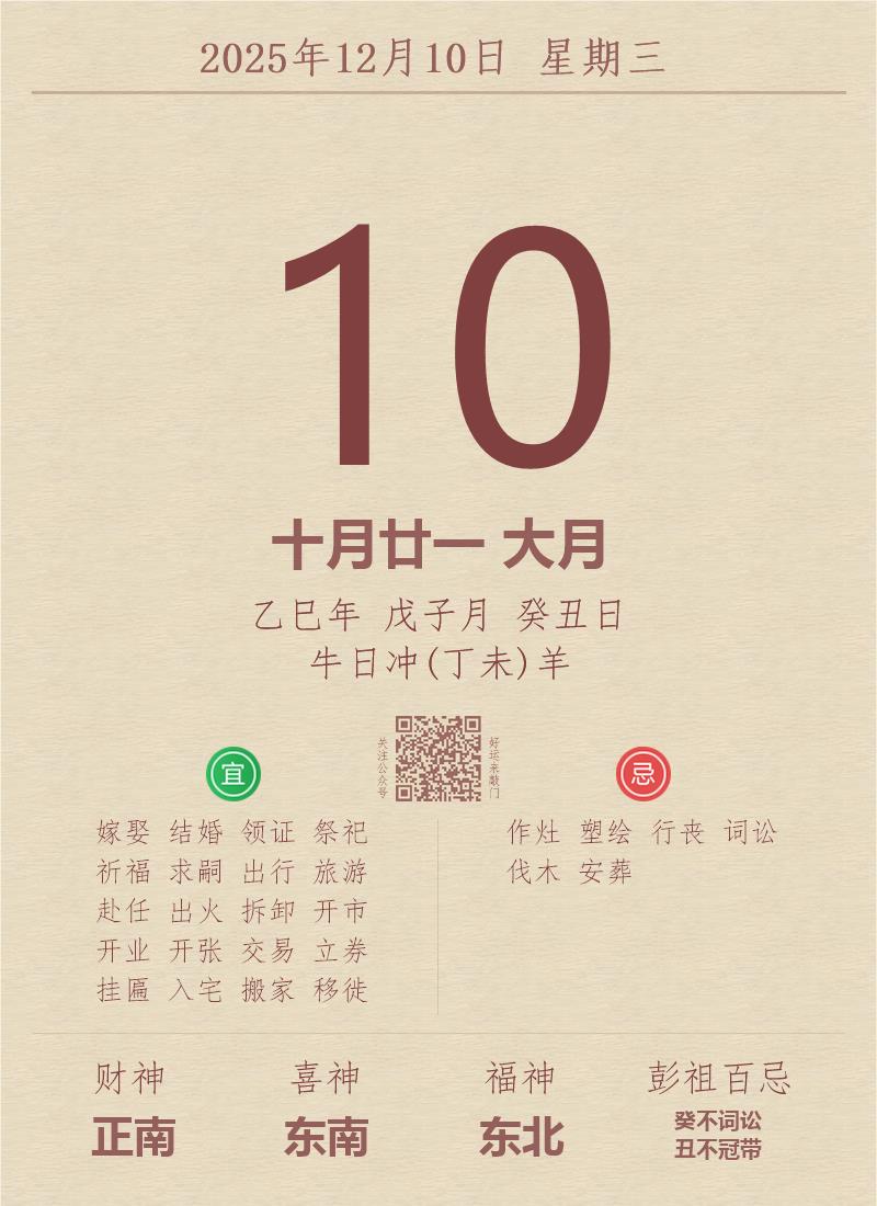 公历:2025年12月10日 星期三