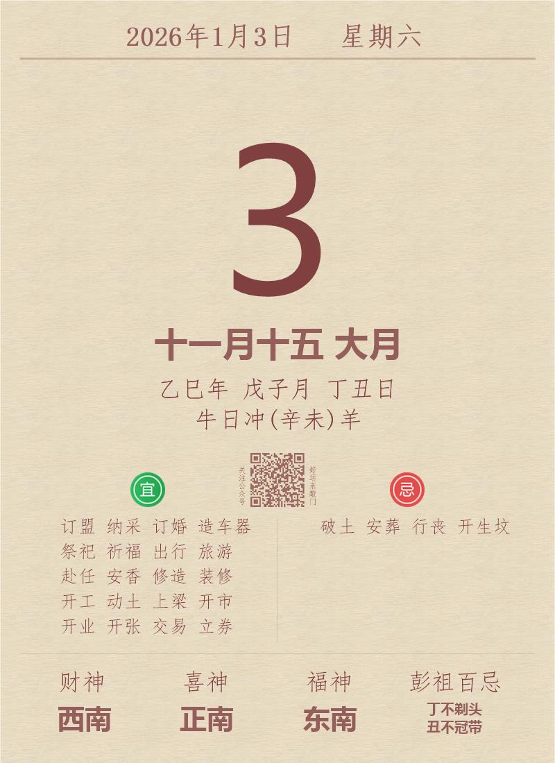 时宜:祈福 求嗣 纳采 嫁娶 求财 开市 交易 安床