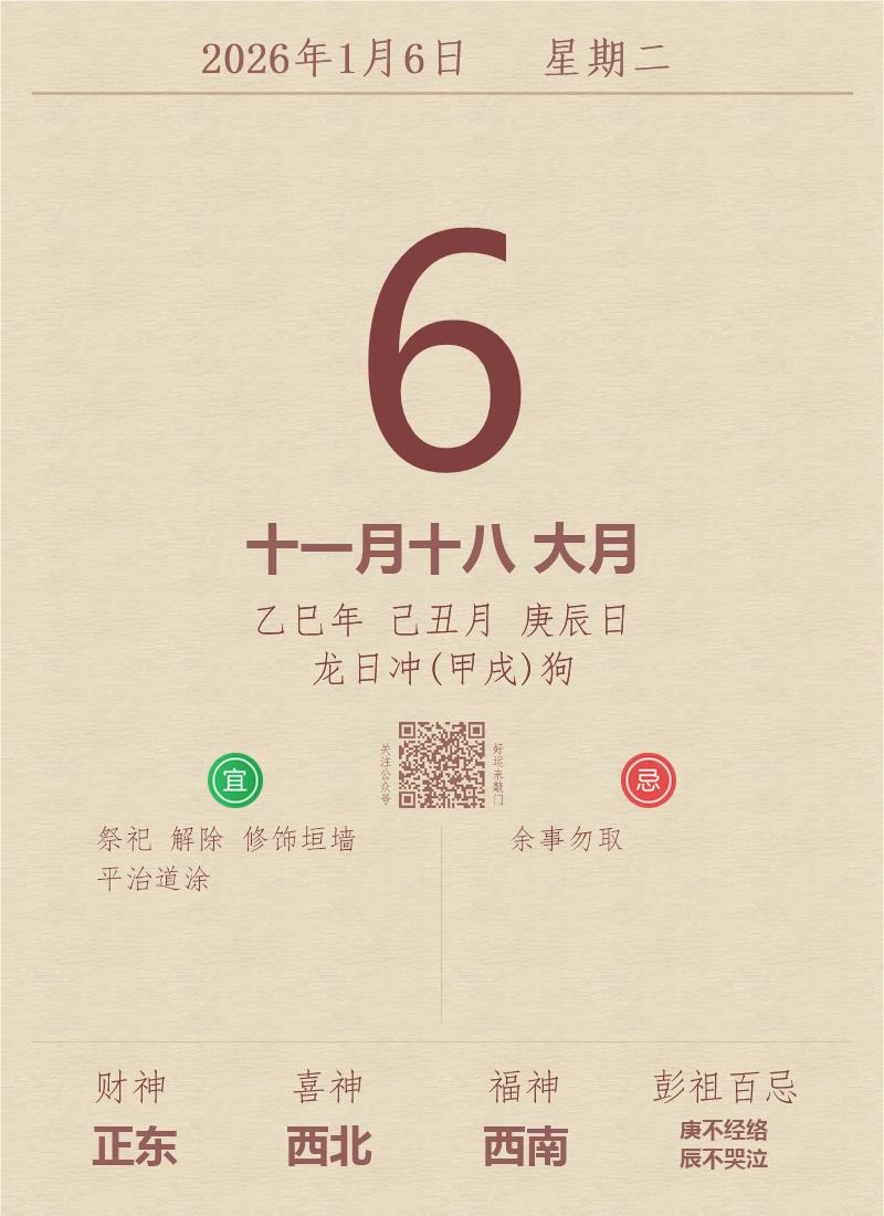 公历:2026年1月6日 星期二
