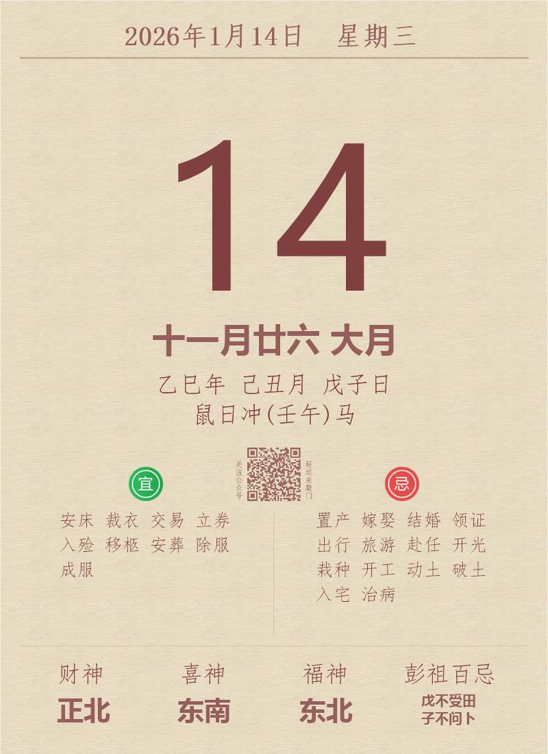 公历:2026年1月14日 星期三