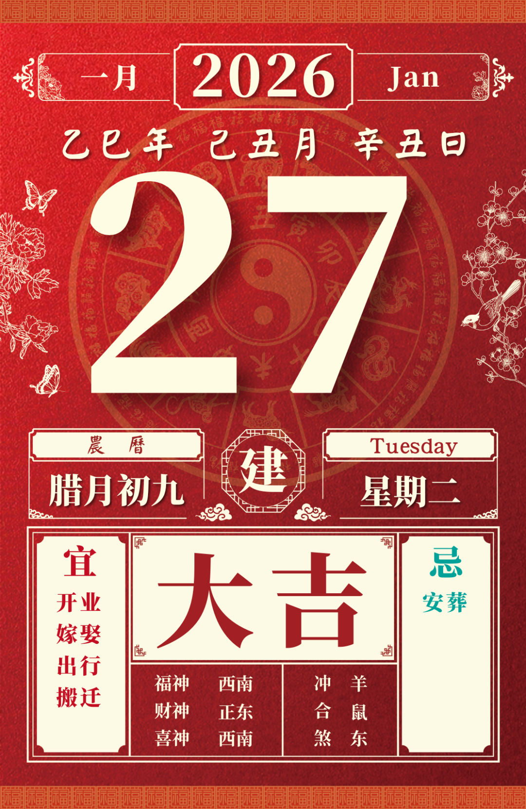 旺运方位:此日利于朝南方出行;西北方不宜。