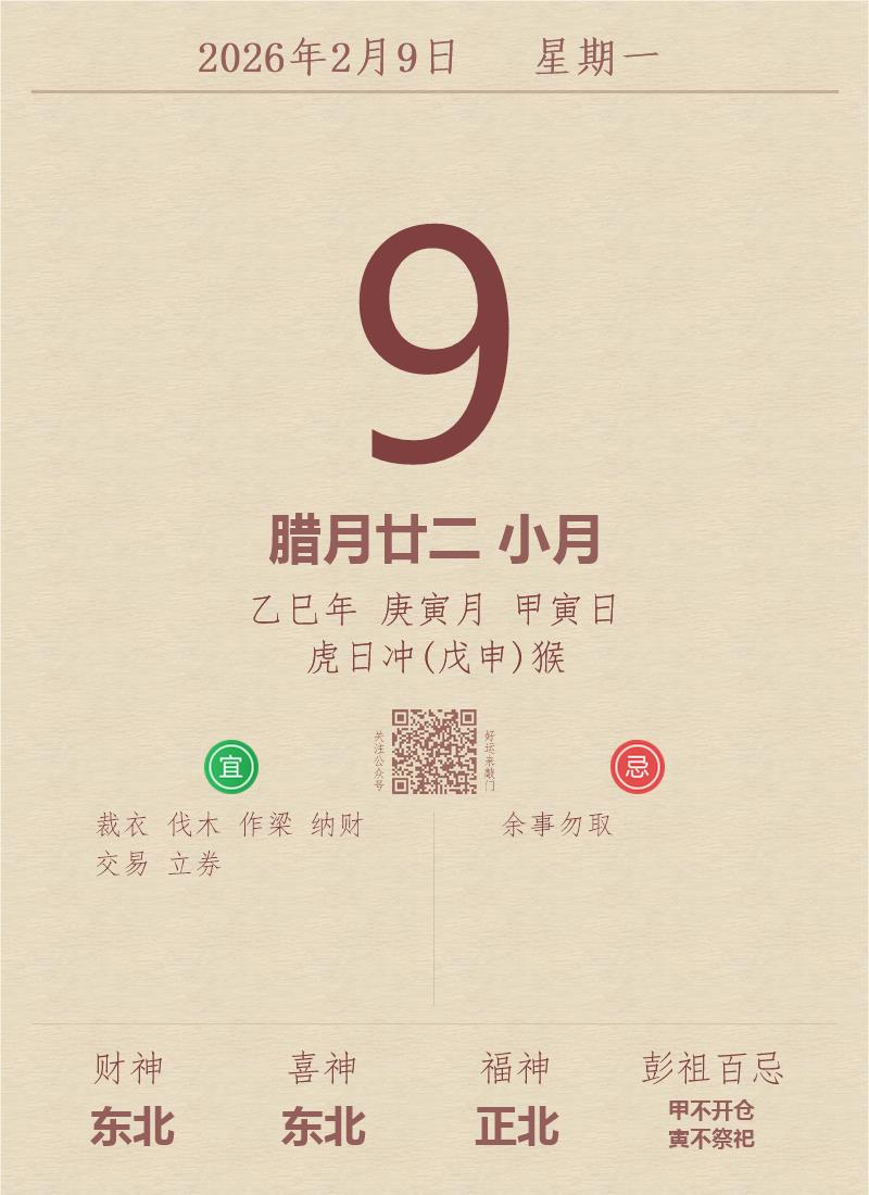 公历:2026年2月9日 星期一