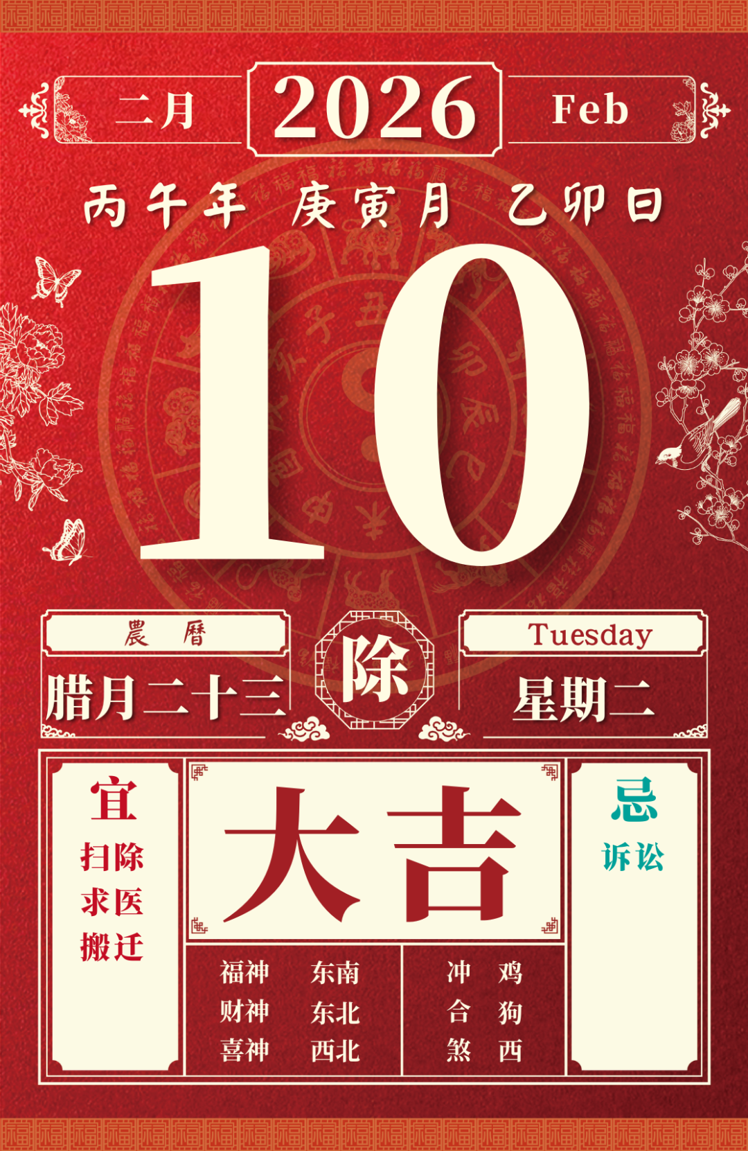 除者,乃除旧生新之象。宜除服、疗病、断邪灵、出行、嫁娶。埋葬修葬遇吉宿好生旺亦吉。
