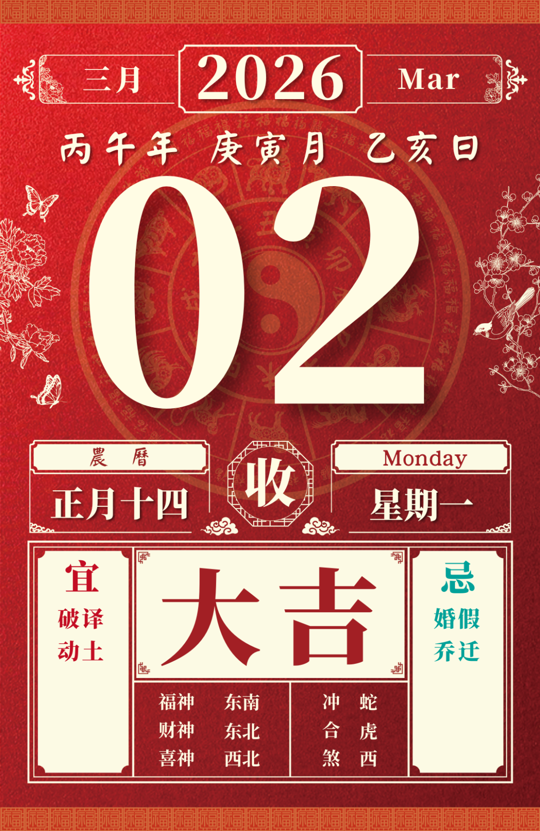 旺运方位:此日朝北方出行;南方不宜。