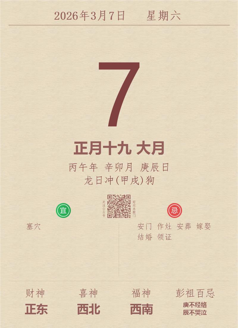 公历:2026年3月7日 星期六