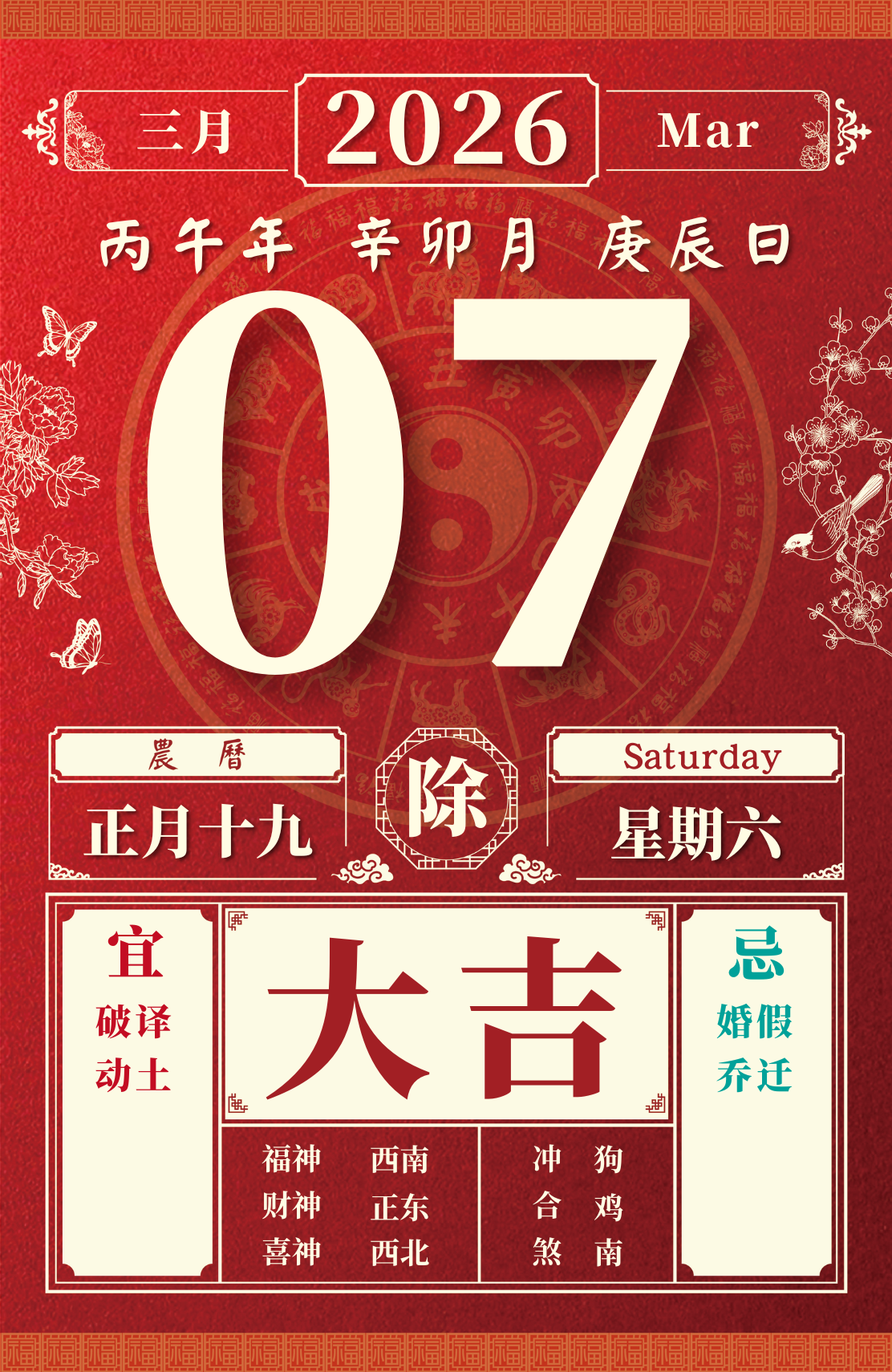 旺运方位:此日利于朝西方出行;东北方不宜。