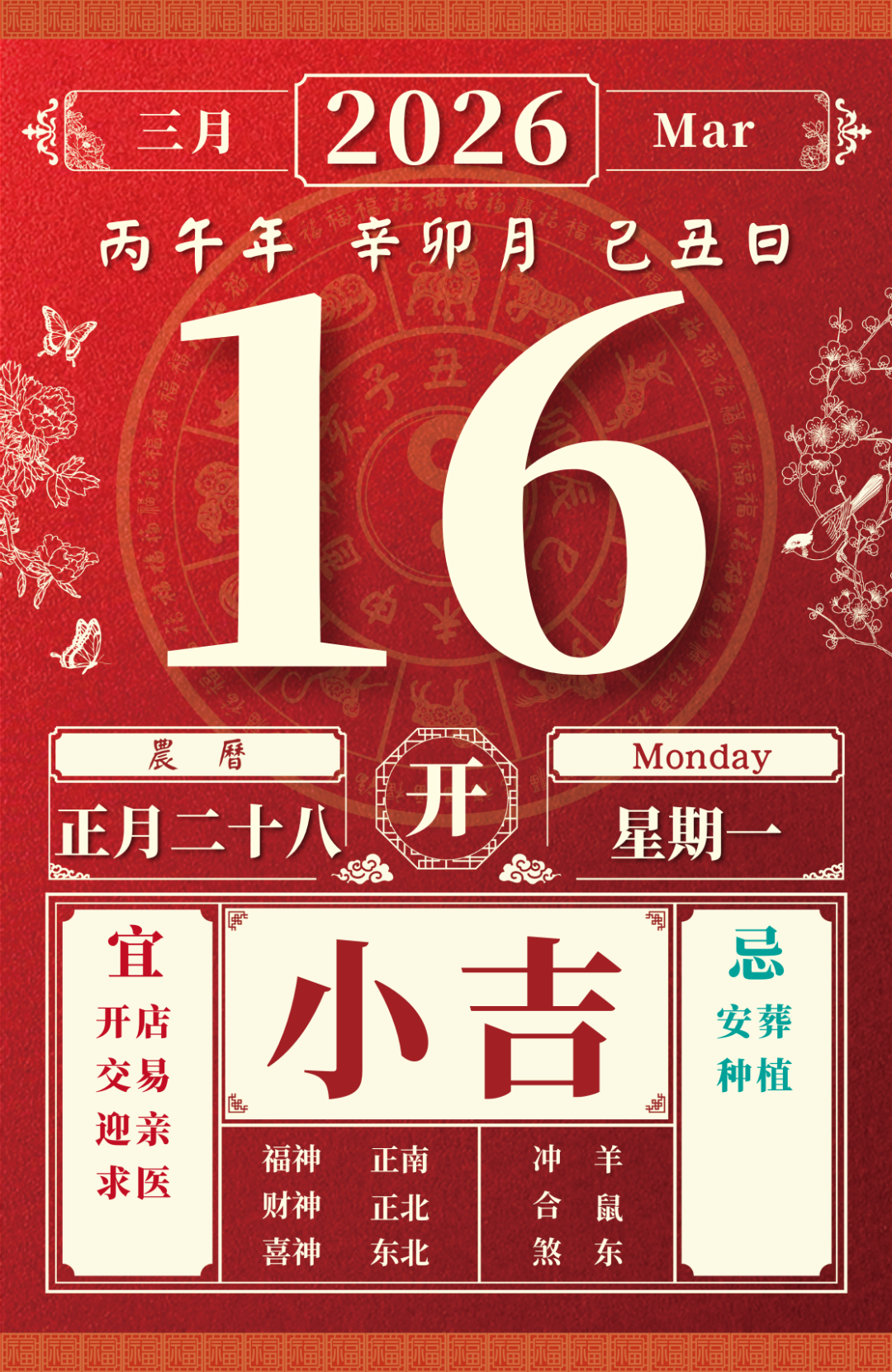 旺运方位:此日利于朝南方出行;西北方不宜。