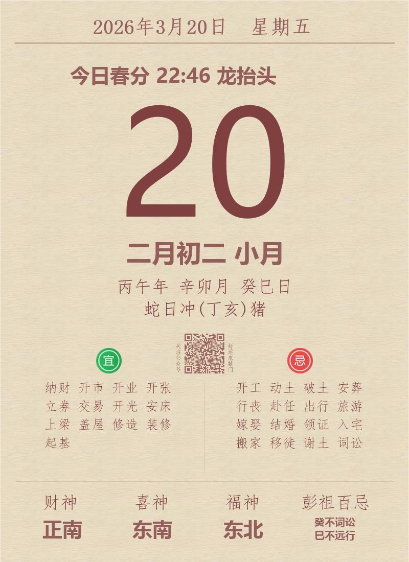 公历:2026年3月20日 星期五