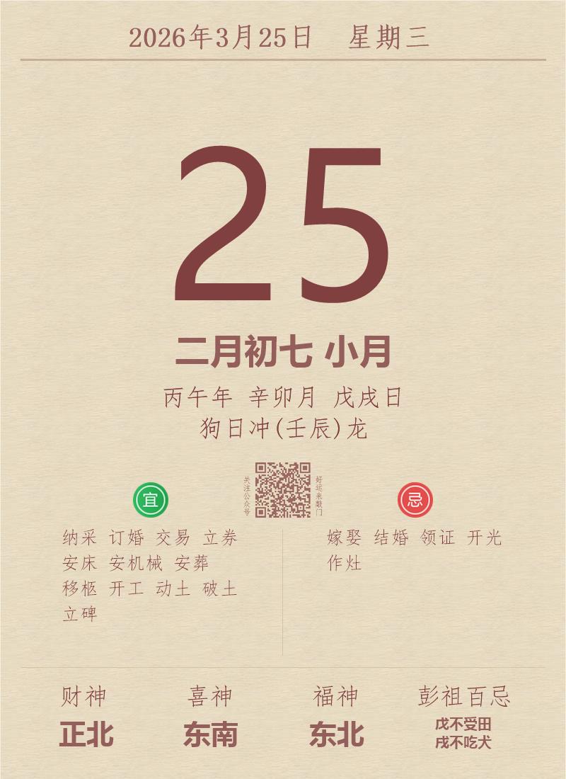 公历:2026年3月25日 星期三