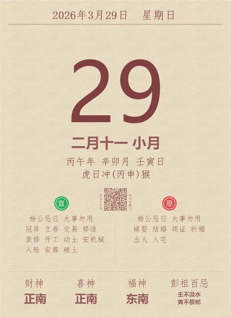 时忌:祭祀 祈福 斋醮 开光 赴任 出行