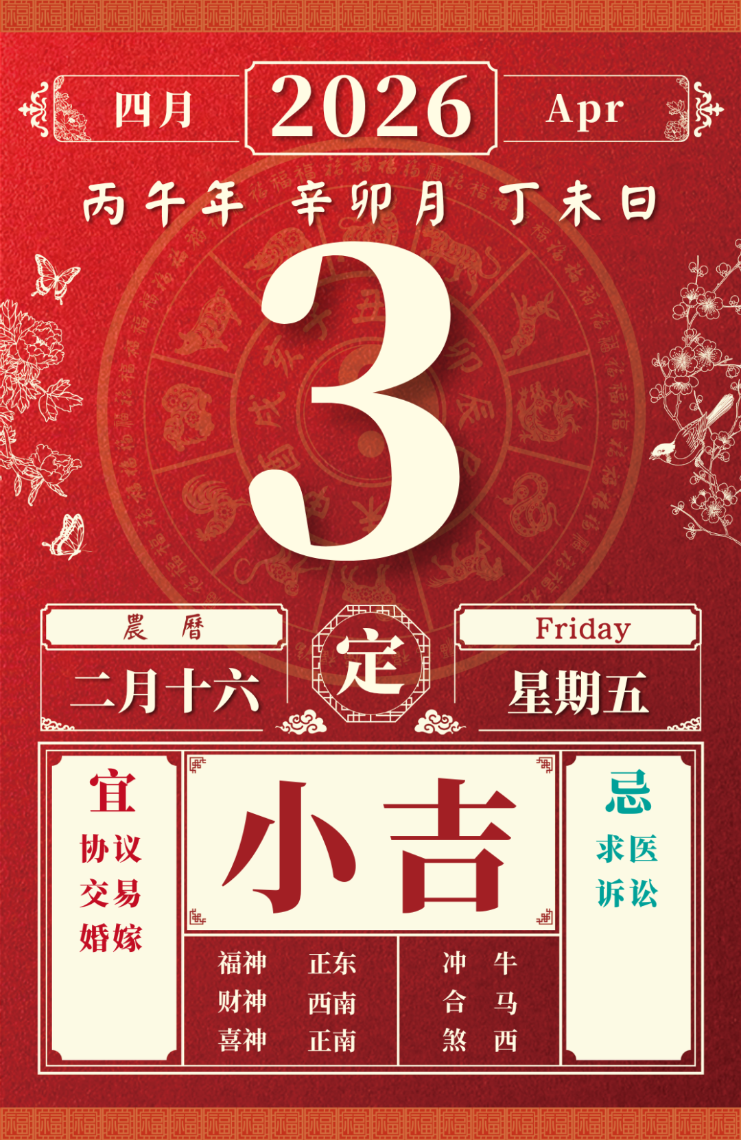 旺运方位:此日利于西方出行;东方不宜。