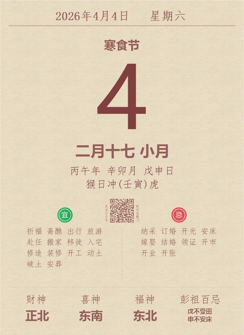 时宜:祈福 求嗣 纳采 嫁娶 出行 求财 开市 交易 安床