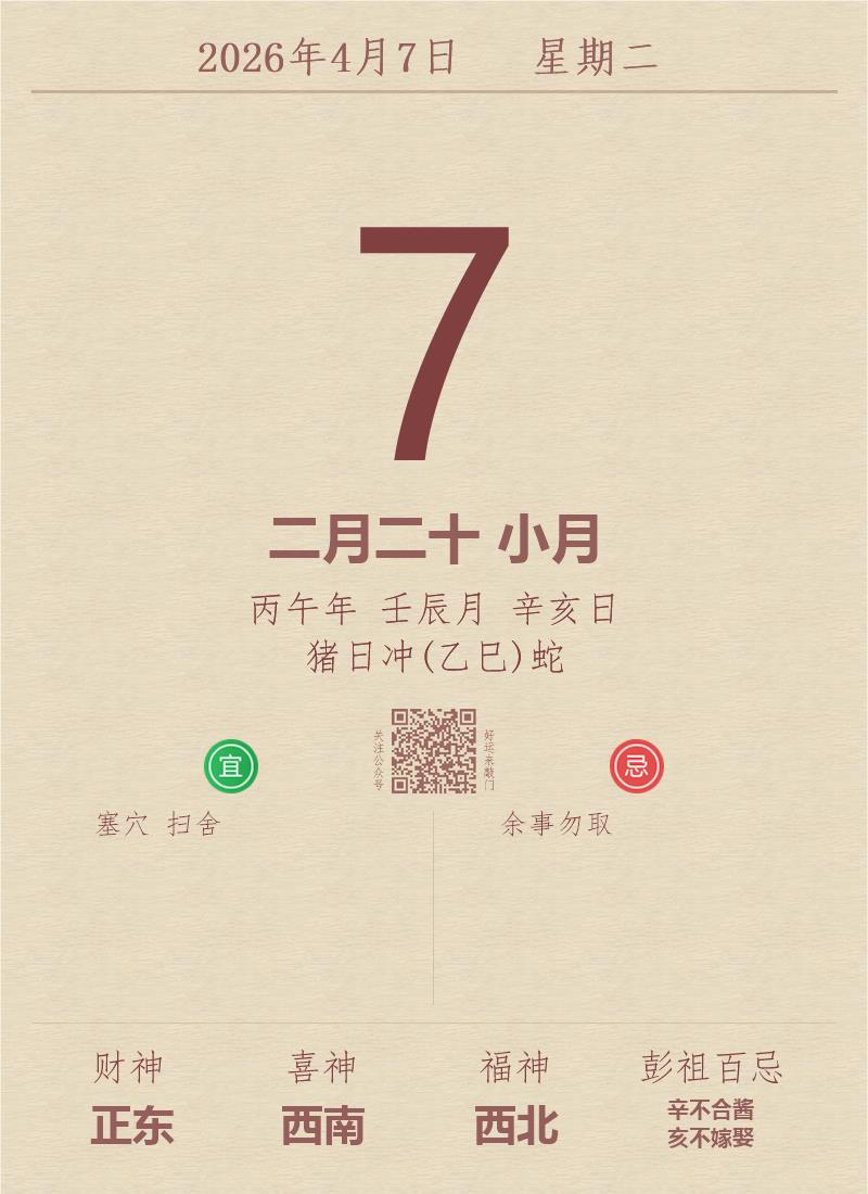 公历:2026年4月7日 星期二