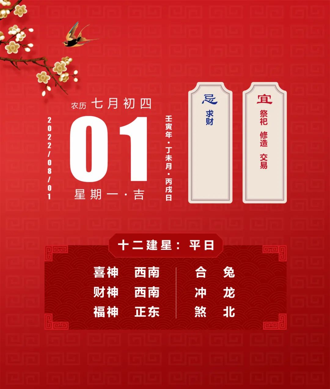 旺运方位:此日利于朝南方出行;东北方不宜。