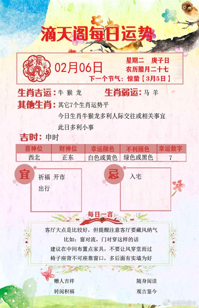 滴天居士2024年2月5日生肖运势