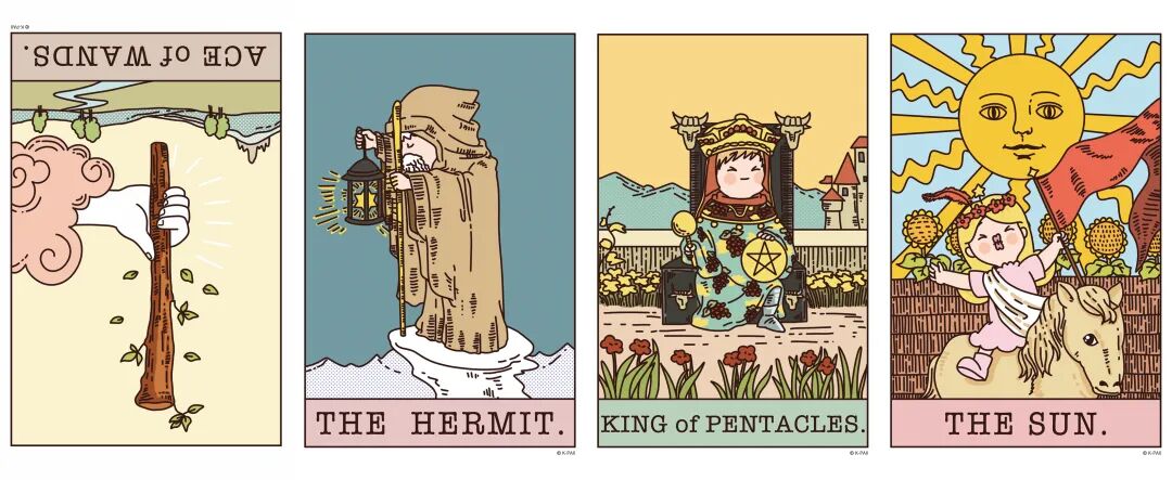逆位权杖首牌、正位隐士