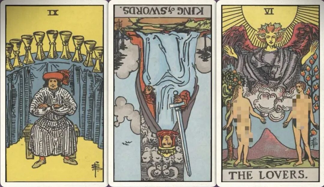 牌:圣杯九+ 宝剑皇帝- 恋人+