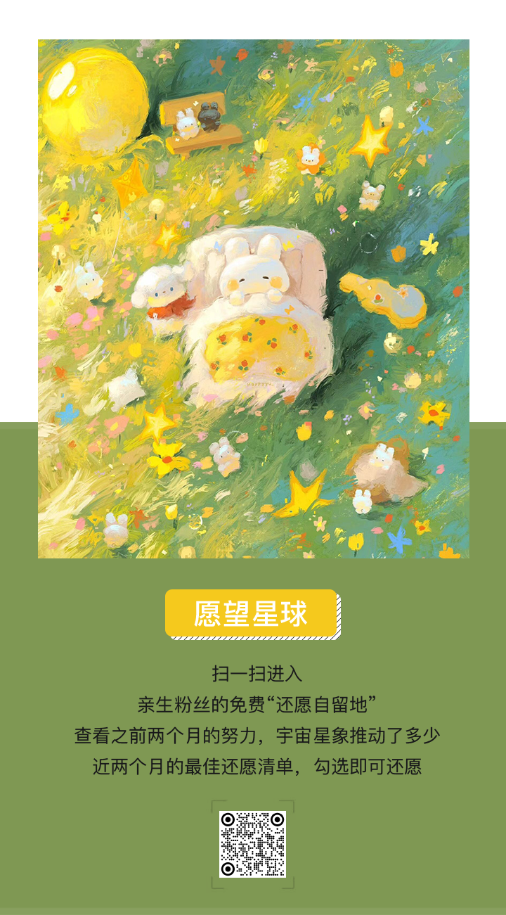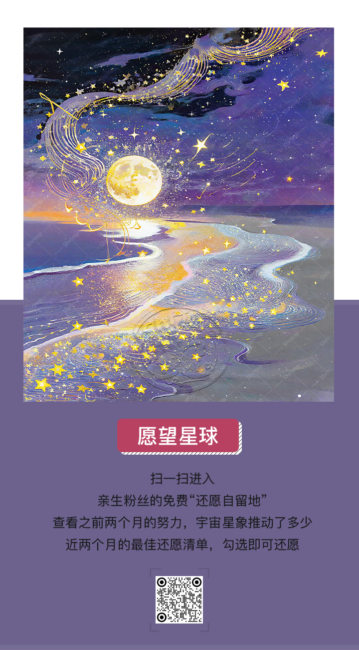 还愿不代表一件事情的终结,而是暂时帮助你达到了目前的预期,所以,还愿时也可以对接下来的努力和期望进行一次展望,等下一次新月时,再跟随每次许愿的指引来许愿(每个星座都不一样),更可以增加实现的几率。