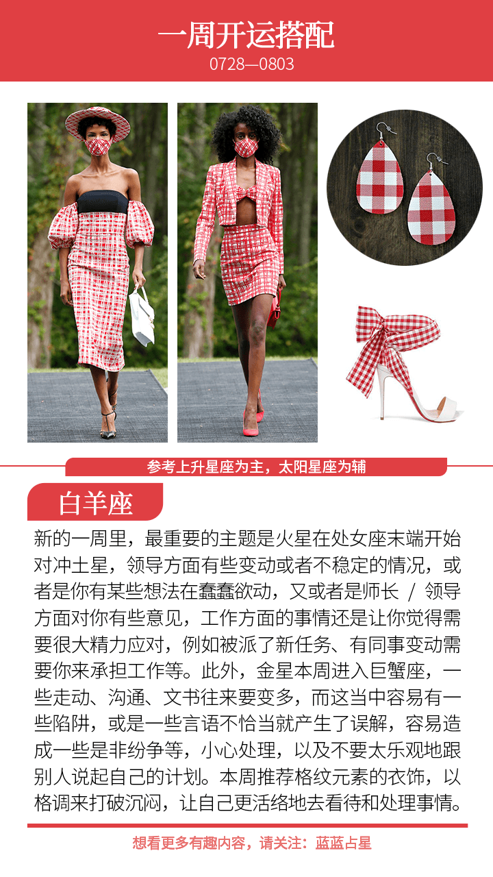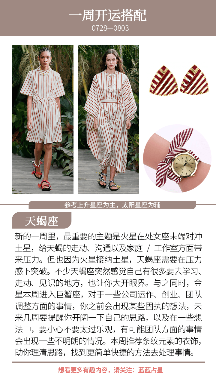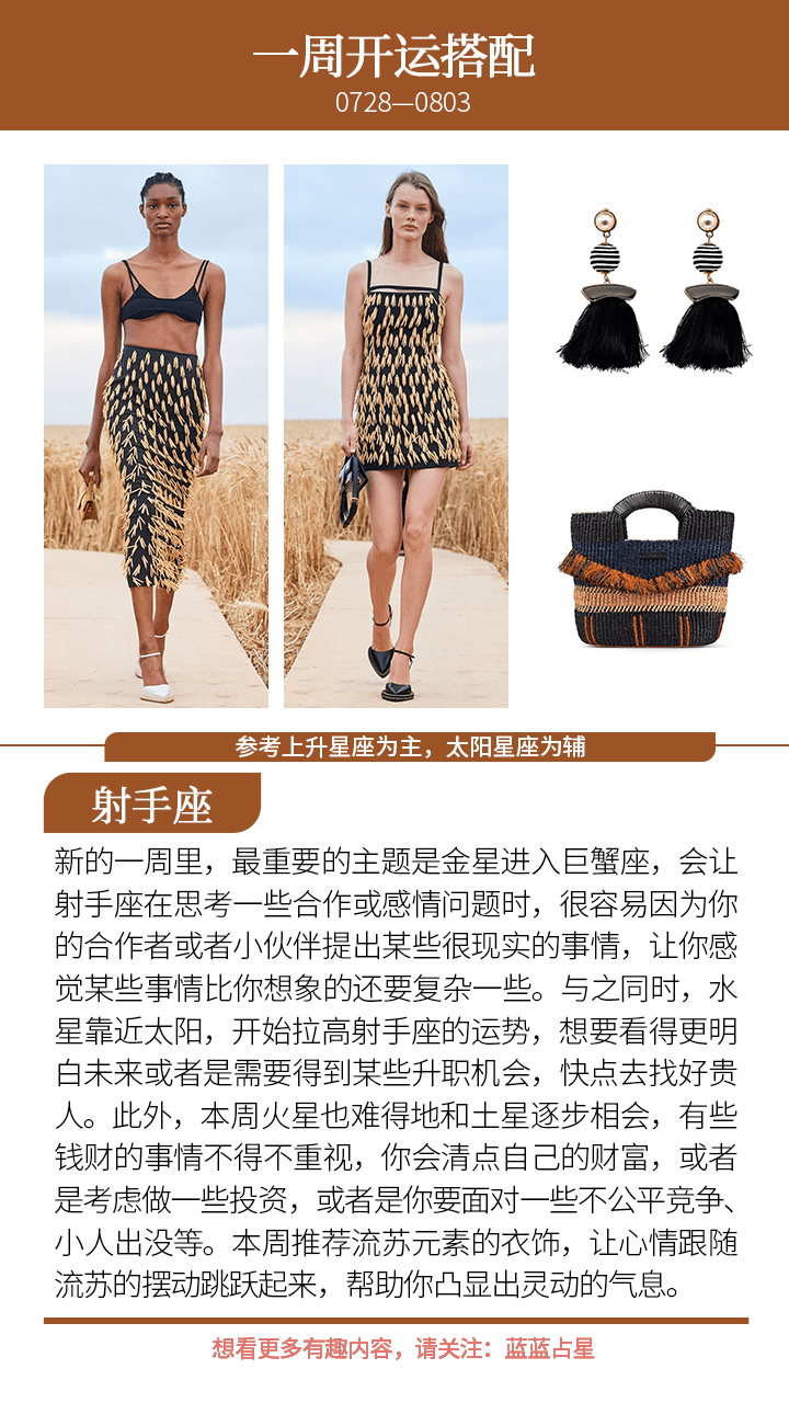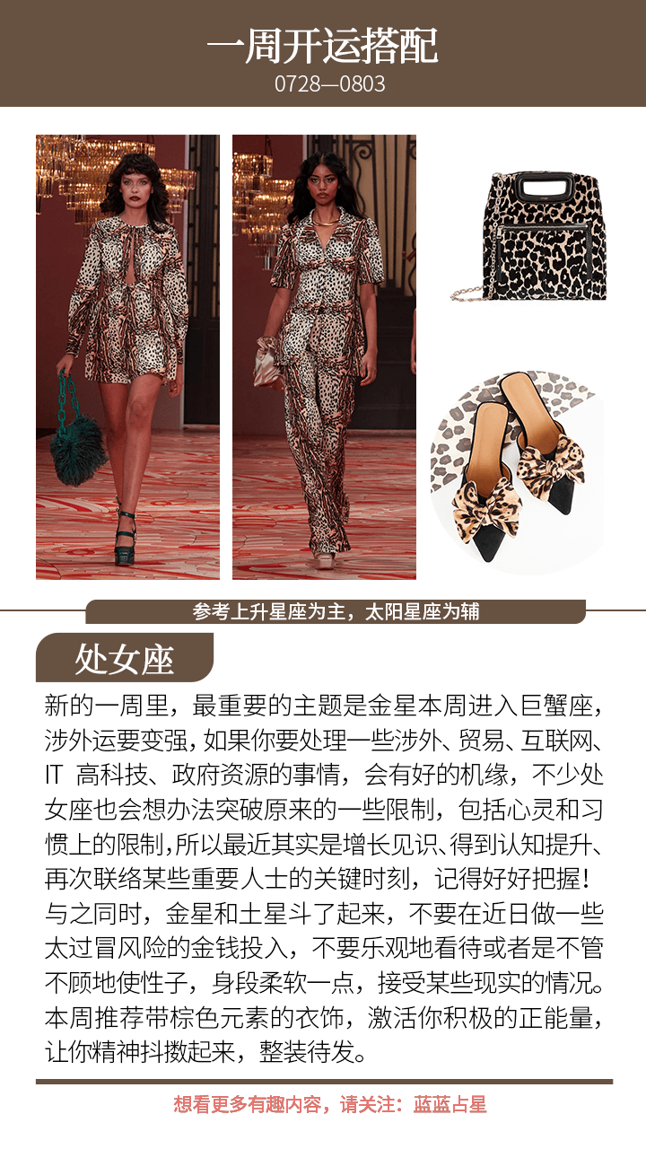 而对于(上升星座或太阳星座)狮子、巨蟹、金牛、天秤来说,你的合作者或者伴侣、恋人会出现额外需要你的情况,或者是他们出现情绪无常的情况,本周尽量独善其身,做好自己能做的,莫管太多他人是非和想法。