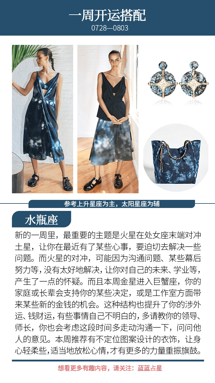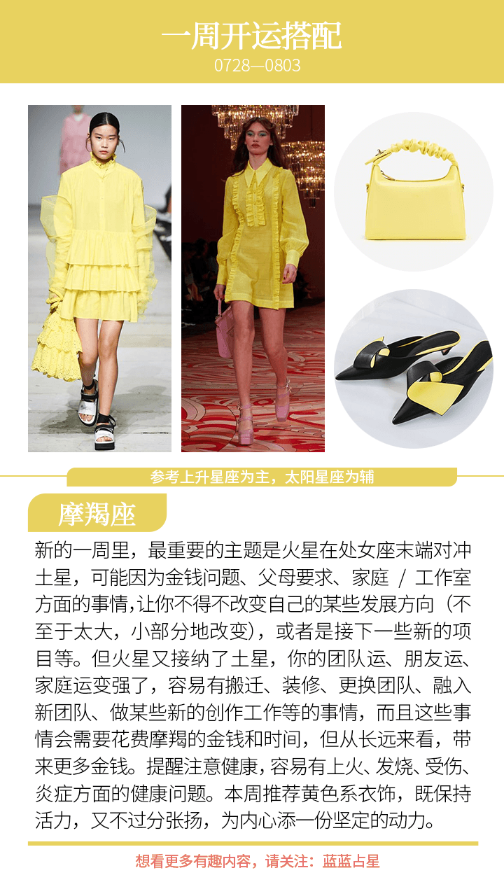 提醒(上升星座或太阳星座)金牛、天秤,本周身心容易不稳,要注意控制一下自己的情绪,以及注意健康;而(上升星座或太阳星座)摩羯和水瓶也要注意给自己更多安全感,不要被家事或者对外拓展的事情所牵引,踏实地过好自己的生活。