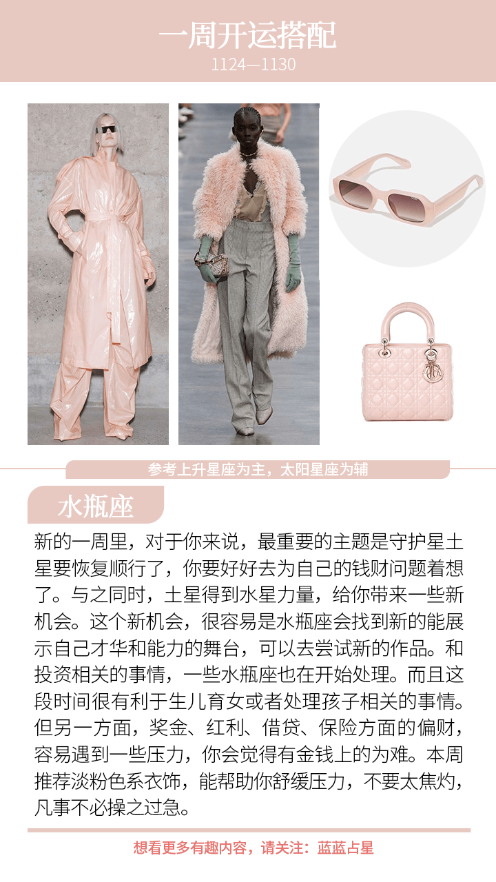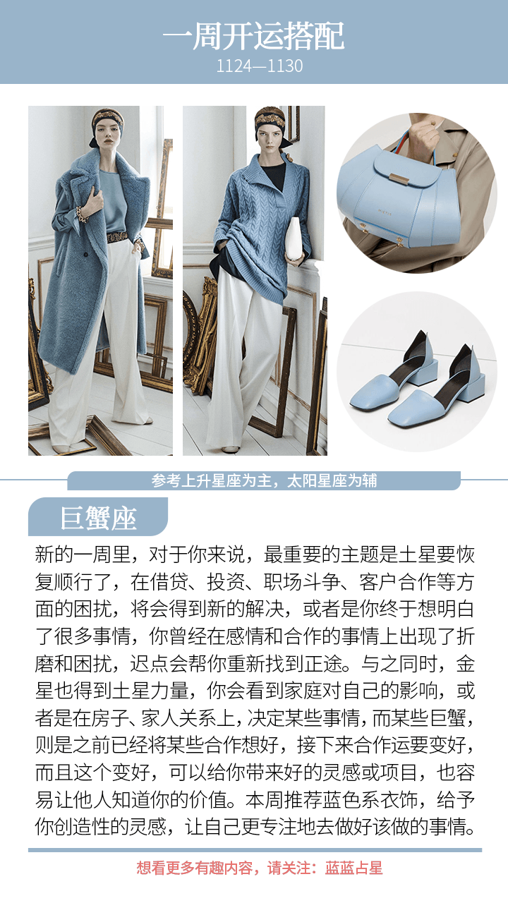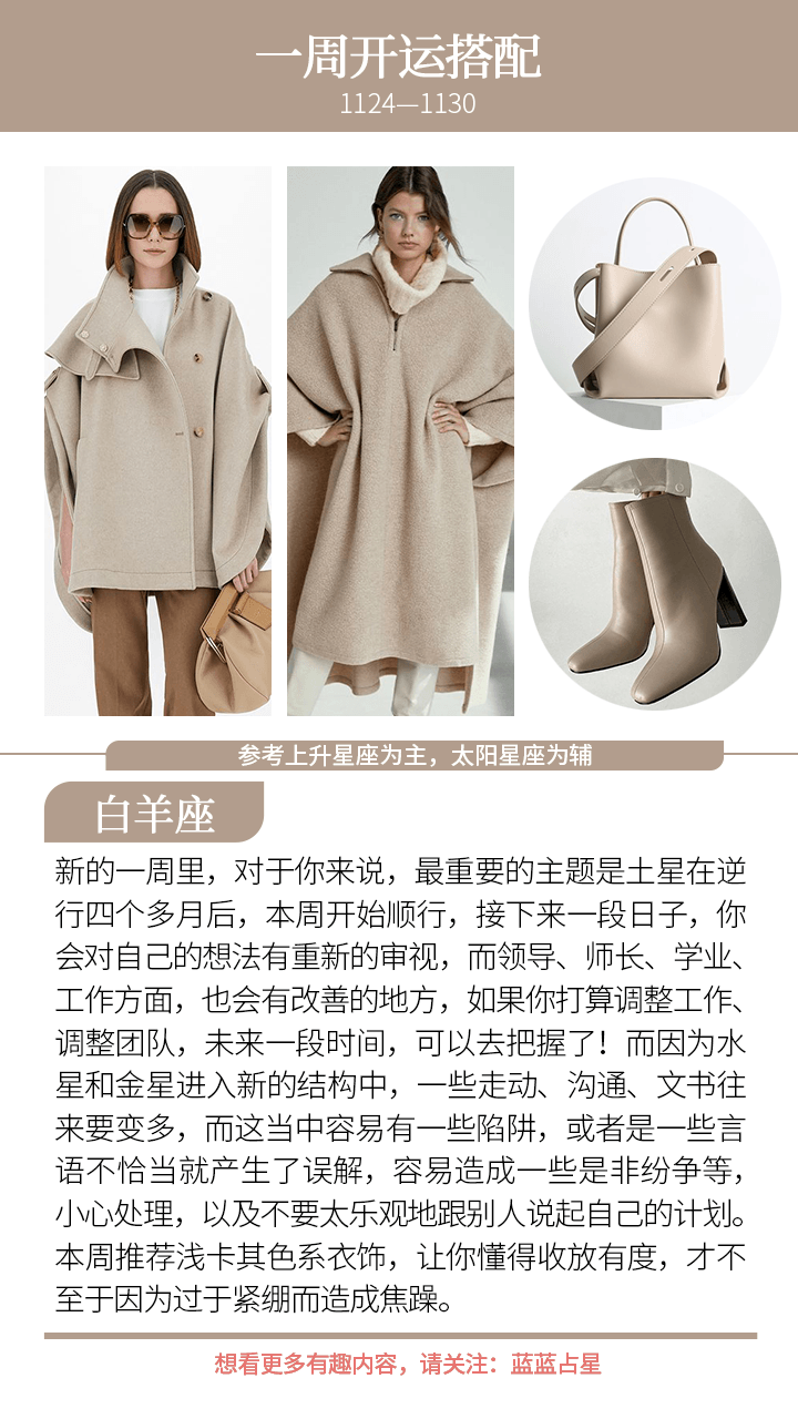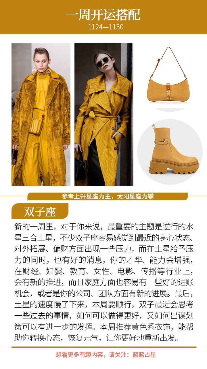 ——土星顺行,让不少有能力的人醒悟过来,找到自己要去努力的新目标,或者是更有动力去推动事情;而水星、金星三合土星,则带来了一波不错的机缘。