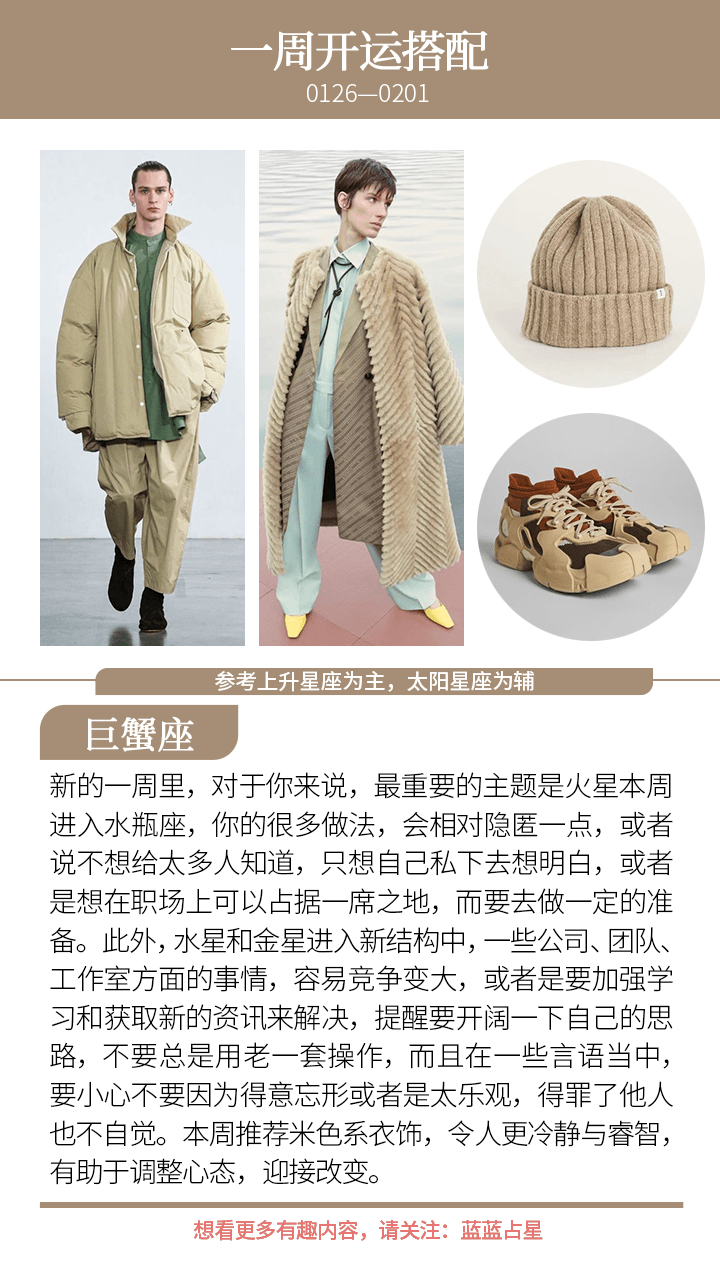 ——很多事情都在往正面发展,看到光明的一面,同时悦纳某些自己不能改变的现状,会开心很多。本周建议多关爱自己,不要太在意他人言语。