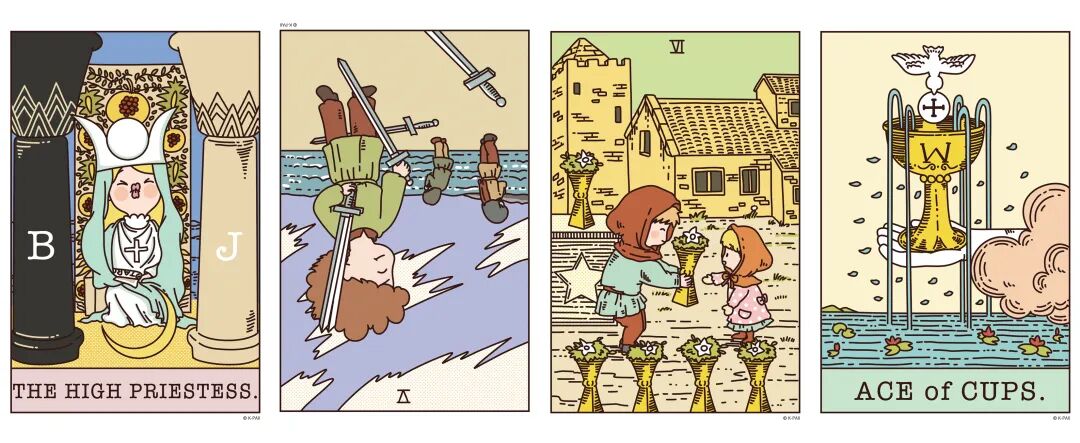 正位女祭司、逆位宝剑五