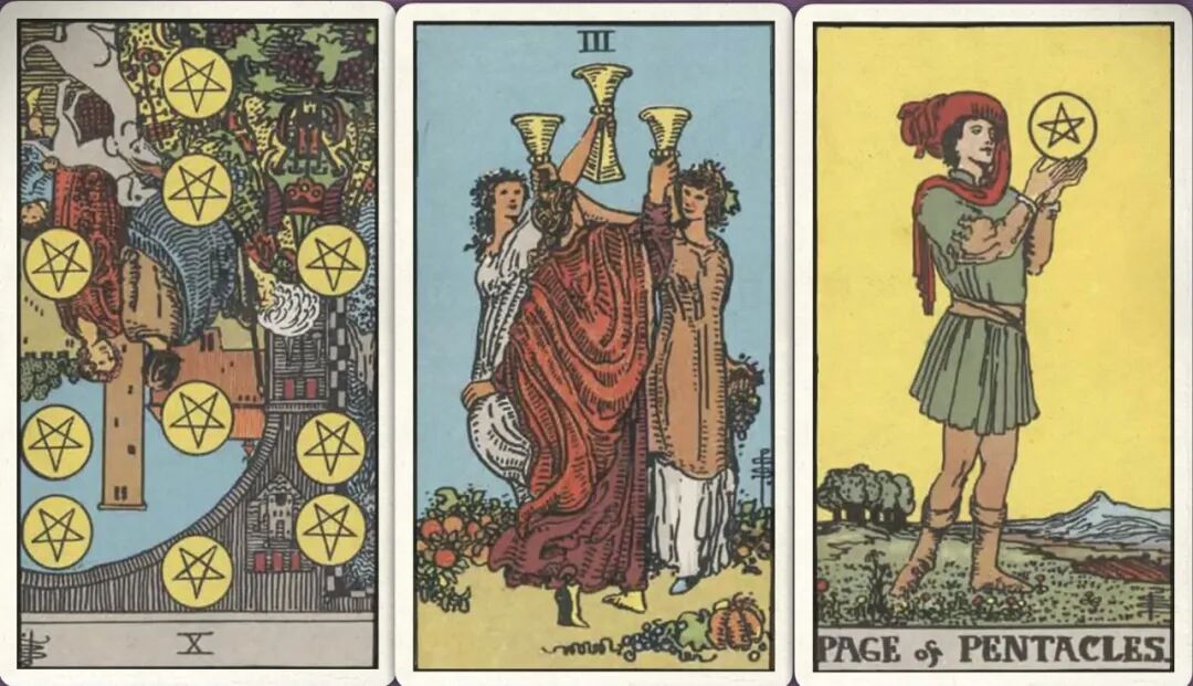 牌:圣杯侍从- 权杖九- 权杖皇帝-