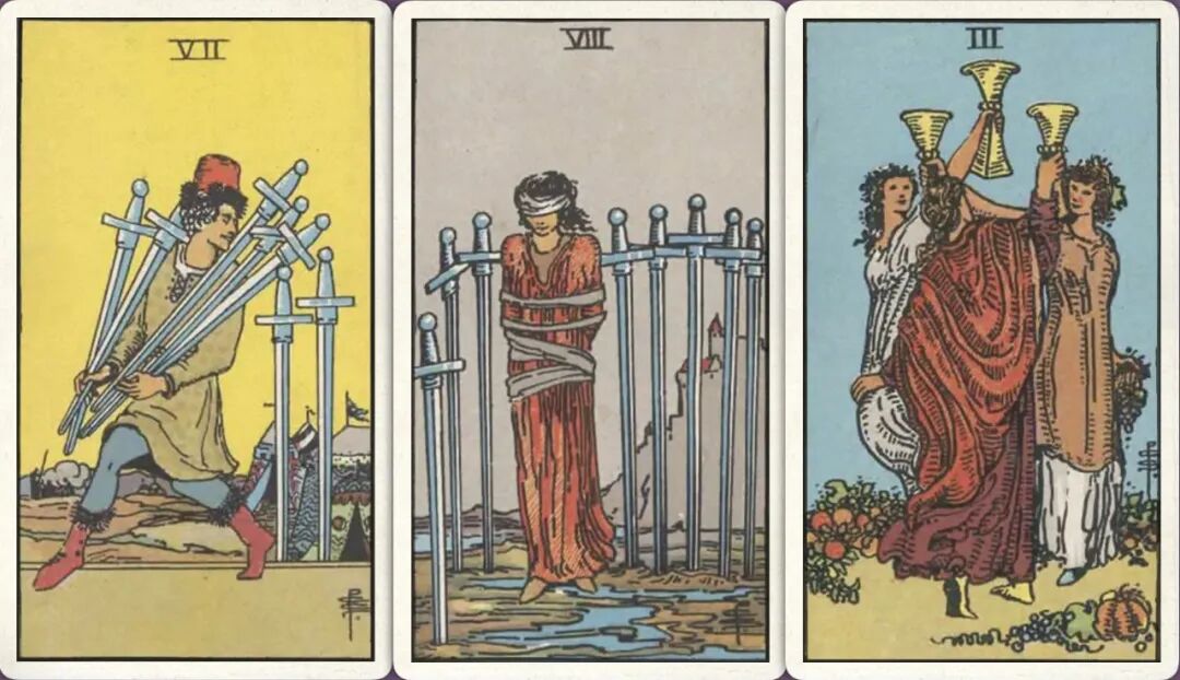 牌:宝剑七+ 宝剑八+ 圣杯三+