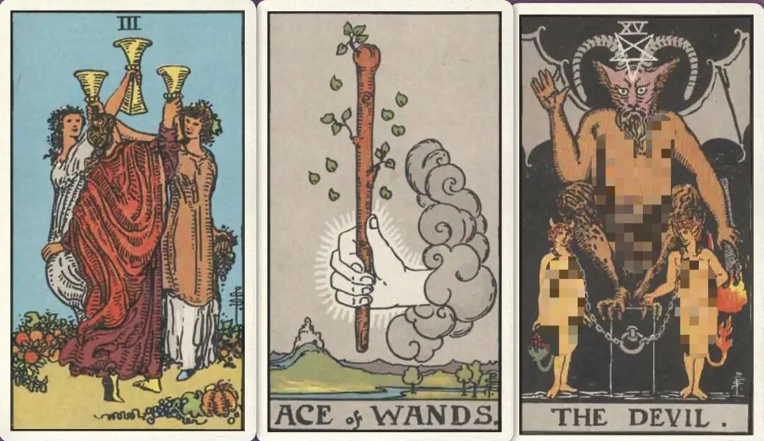 牌:圣杯三+ 权杖ace+ 恶魔+