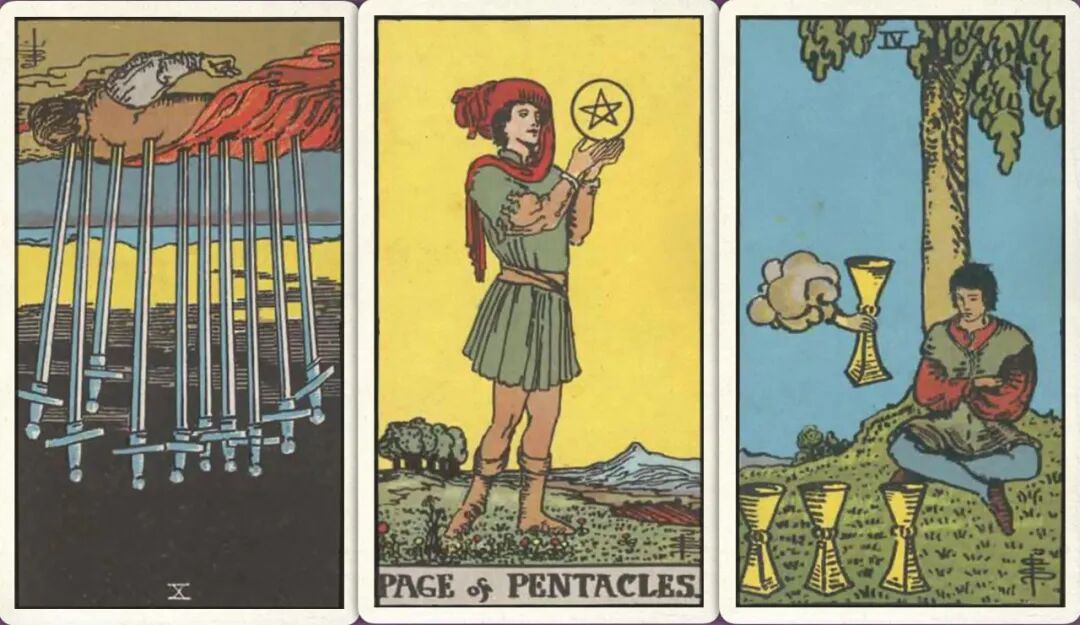 下半年:宝剑十- 星币侍从+ 圣杯四+