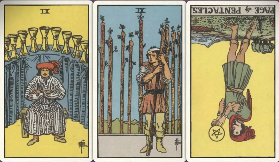 牌:圣杯九+ 权杖九+ 星币侍从-