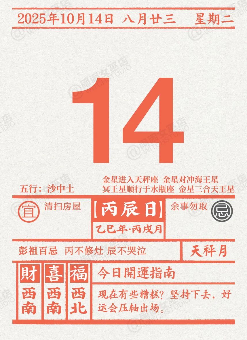 今天情绪像坐过山车般起伏,重要决定最好推迟处理。可以通过写情绪日记梳理感受,或者做些重复性手工劳动来平复心绪。记得关掉社交软件提醒,给自己创造安静空间。